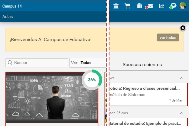 En este sector se mostrarán las notificaciones generales para los usuarios. Estas notificaciones se muestran por igual a todos los usuarios pero a medida que son leídas dejan de ser nuevas y al cerrarlas dejarán de aparecer.