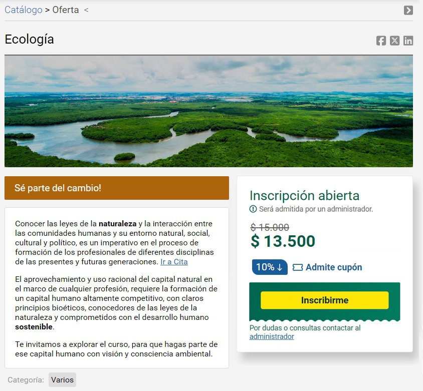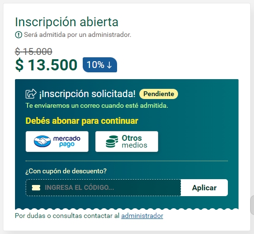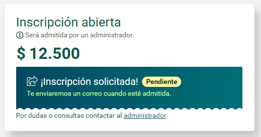Si la inscripción debe ser aprobada por un administrador, deberás esperar su validación para ingresar al curso desde el Escritorio.