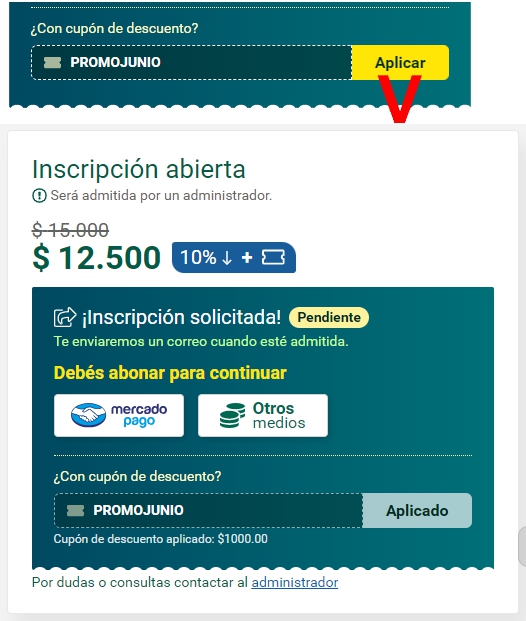 Una vez que te hayas inscripto deberás abonar el costo del curso si corresponde.