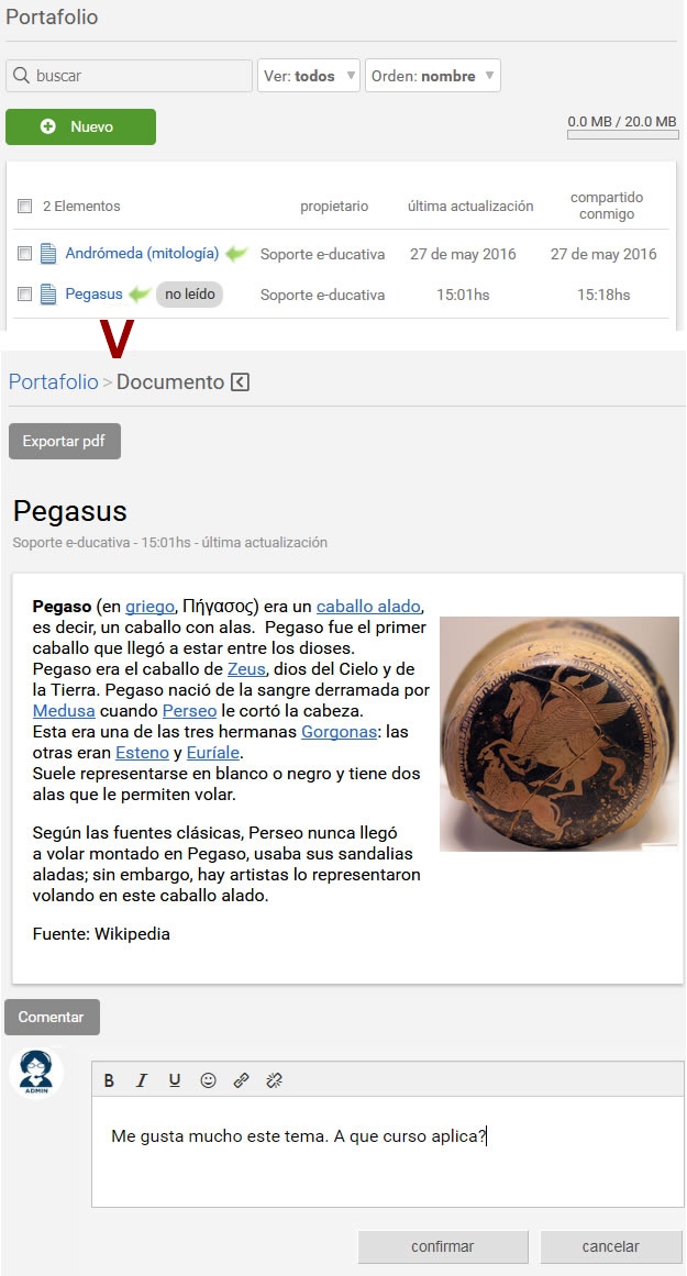 Podemos comentar los propios o recibir comentarios de todos los usuarios a los que les compartimos los materiales.