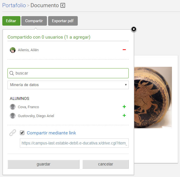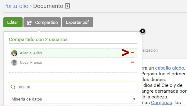 1. Es posible compartir la nota o archivo a otros usuarios, aquellos que comparten las aulas con el usuario.