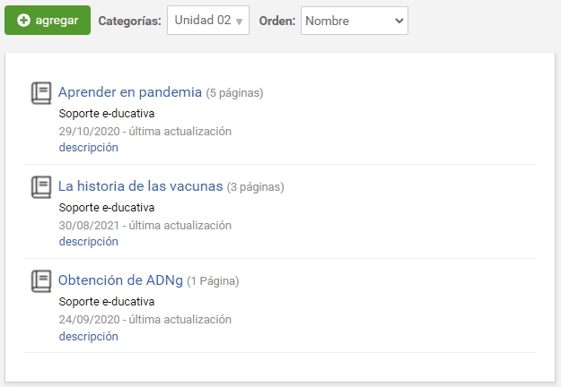 Una vez creada la nueva Wiki, se muestra en la lista de la vista de usuario como sigue: