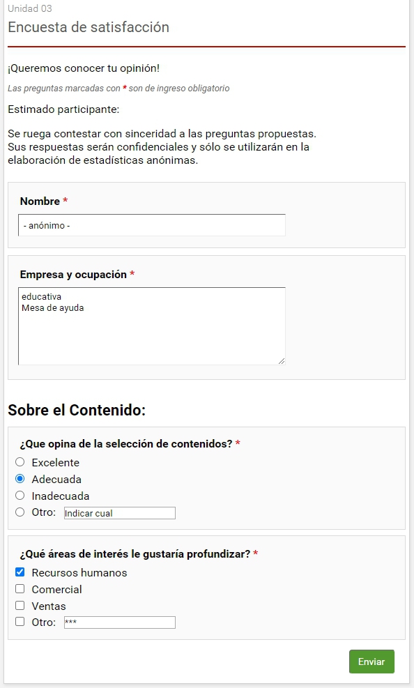 El acceso a la encuesta se visualizará dentro de la unidad de contenido correspondiente.