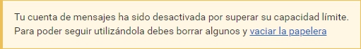 Importante: todos los mensajes en Enviados y Papelera serán incluidos en el cálculo de espacio.