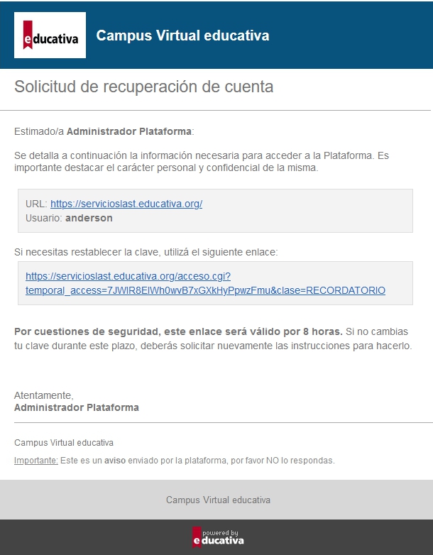 Esta información, en general, fue remitida por e-mail como Solicitud de cambio de clave de acceso o entregada personalmente.