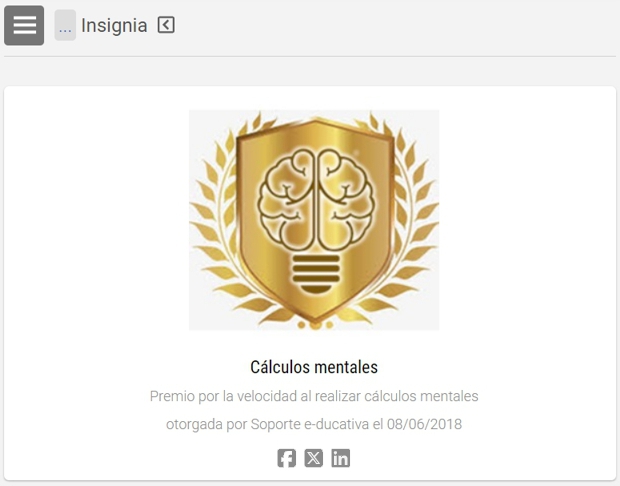 Al ingresar a una de ellas se ve el detalle de la misma y cuando fue otorgada al usuario si corresponde. Además puede compartirse el premio a través de las redes sociales.