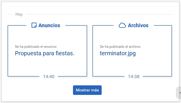 Se muestran, si están activados para el aula, los últimos sucesos.