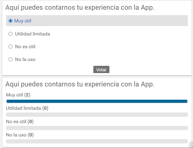 Sondeos: mostrarán sondeos de opinión, si los hubiera. Éstos nos permitirán votar y si ya hemos emitido nuestro voto, mostrará el resultado del sondeo a la fecha.