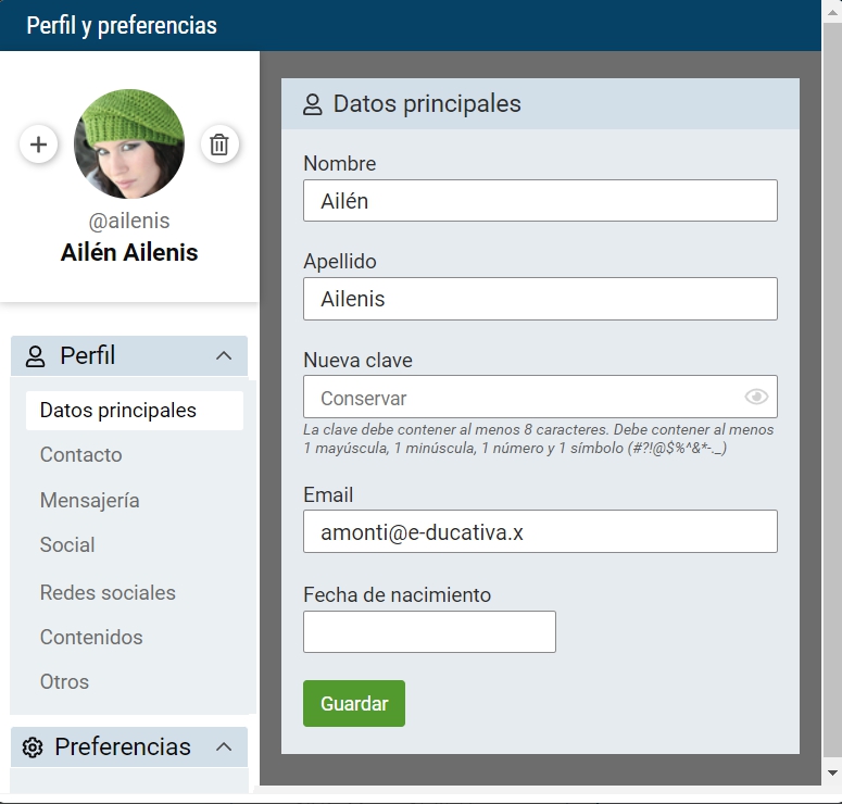 La sección Perfil y preferencias presenta la información dividida de tal forma que resulte más clara su visualización.