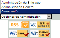 El pie de página es un cierre que se establece en el diseño gráfico del sitio. El contenido incluye: - Acceso a la administración (si nuestro usuario dipone de permisos y nos hemos logueado) - Botones para sindicar la información de nuestro sitio en otras páginas Web. |