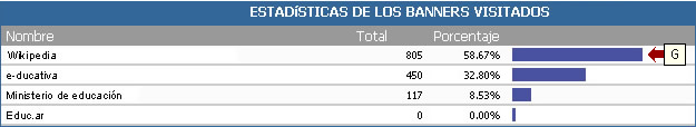 Finalmente de la información sobre los anuncios publicitarios o banners más visitados del sitio (G).