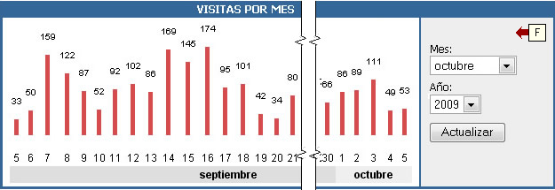 Se dispone también de un gráfico que nos muestra la evolución de los accesos al sitio en el mes deseado (F).