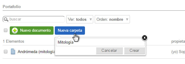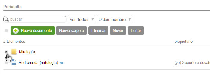 El portafolio permite crear carpetas y mover los documentos según el criterio de cada usuario.