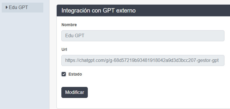 Una vez activada, será visualizada al ingresar a la administración de la plataforma: