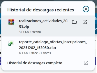 + Nombre: realizaciones_actividades_<timestamp>.zip