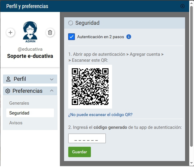 El usuario podrá modificar sus datos adicionales. Los datos mostrados para completar serán los definidos en la Configuración de la plataforma.