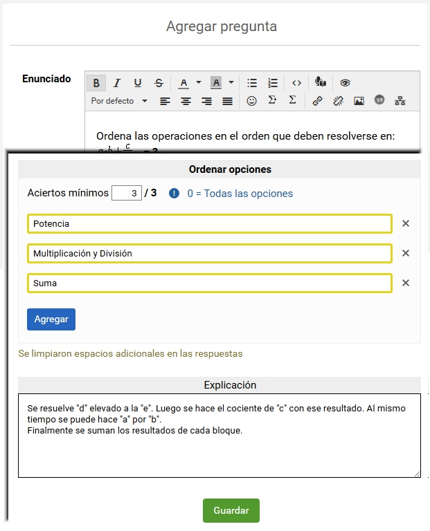 4º paso: En el campo Explicación, se puede escribir o no la justificación de la respuesta correcta.