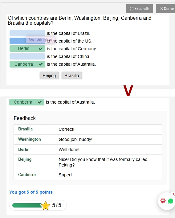 De lo contrario se indicaría la respuesta correcta si se ha respondido mal o bien como se muestra en las imágenes anteriores.